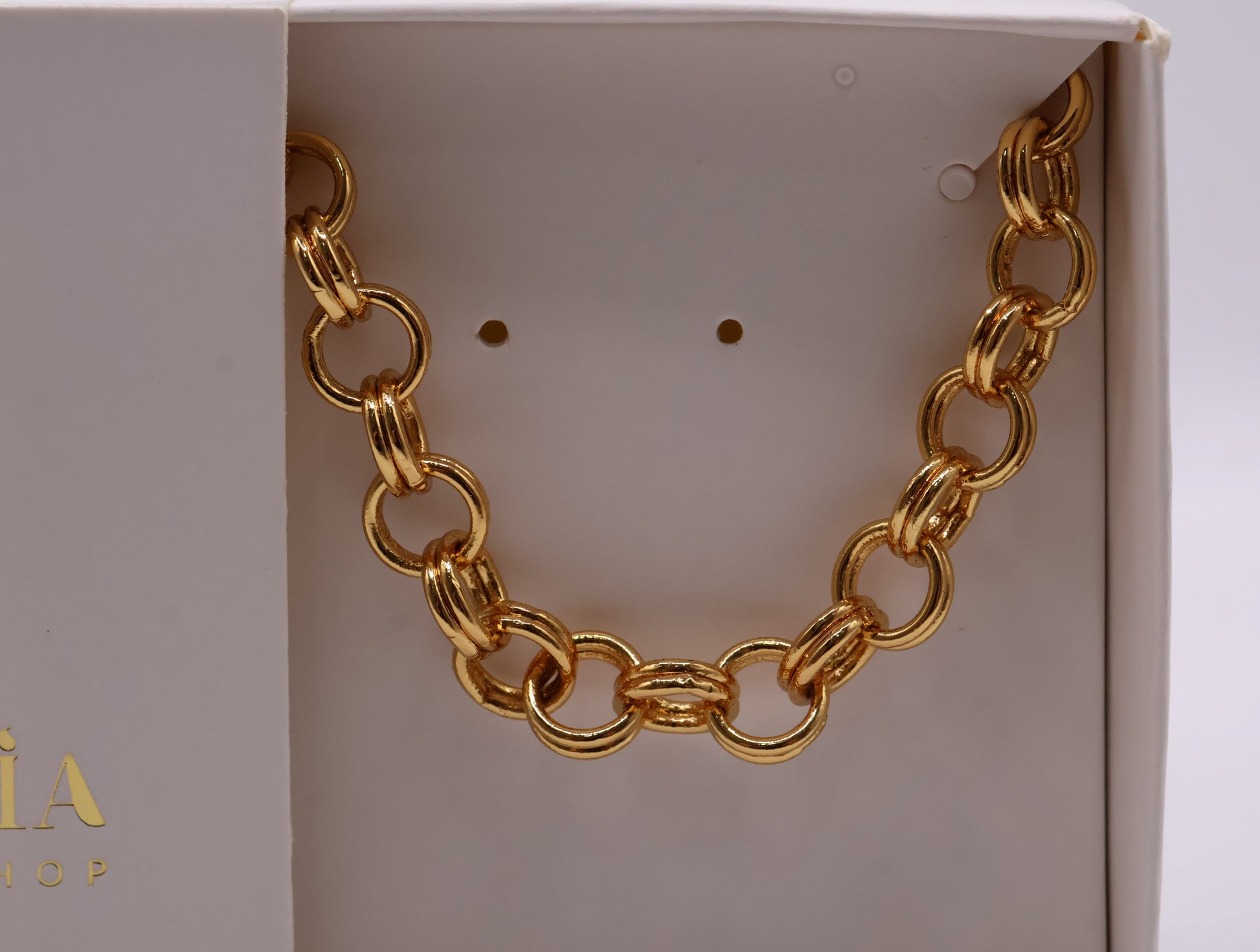 Cadena tipo doble argolla de 45 cm (+5 cm extensor) bañada en oro 24k o plata.
